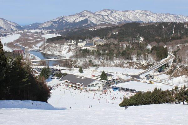 新潟縣胎內市的單板、雙板滑雪場。每週末是「兒童滑雪日」,小學生以下的兒童可免費搭乘雪上自動步道,小學生搭乘纜車只要JPY500!從JR中條站開車或搭計程車前往約20分鐘,下日本海東北道中條IC交流道約25分鐘即達,交通便捷。